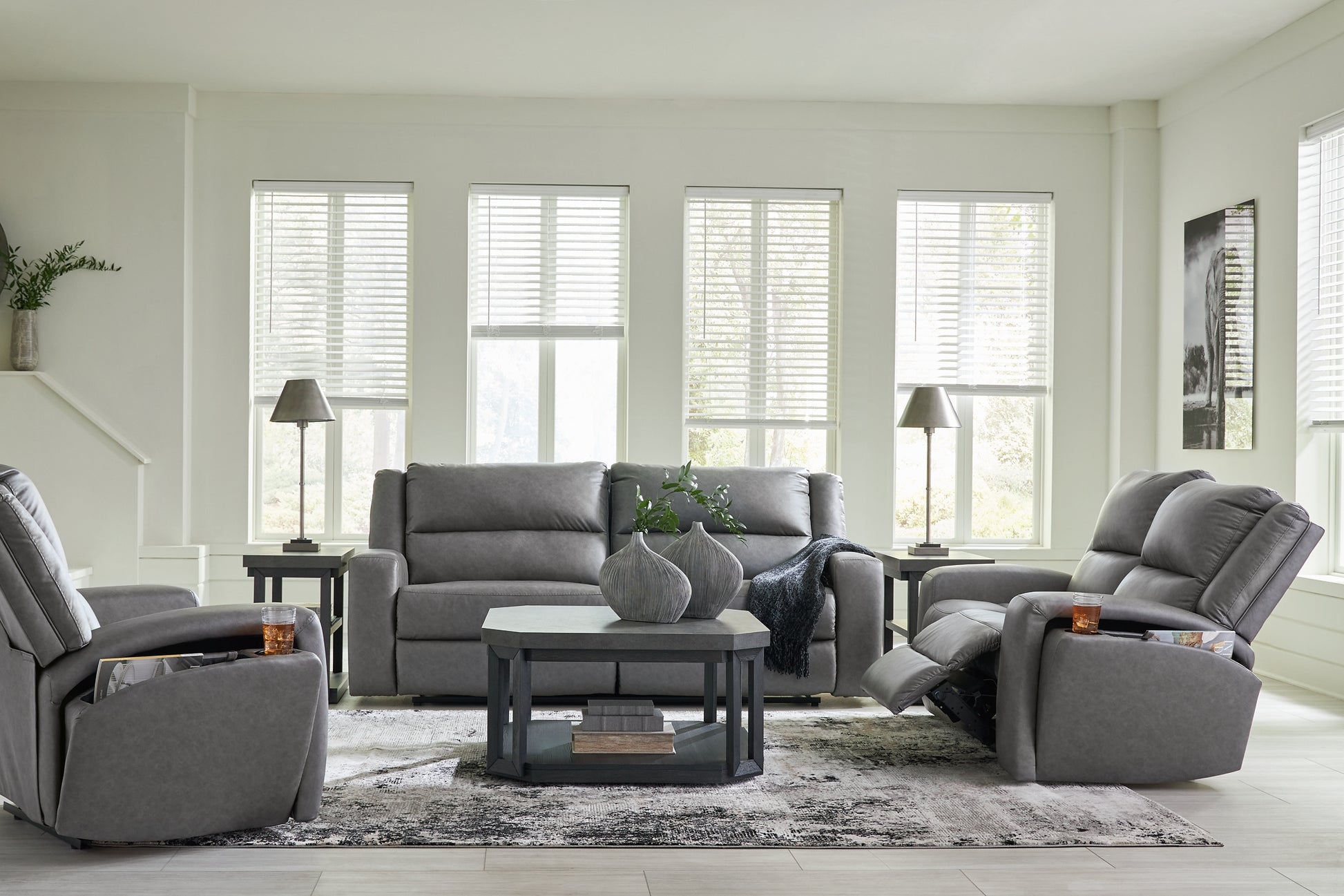 This upholstery package appeals to your love for feature-filled furniture, all while maintaining a clean-lined and contemporary design. Pop-out storage and cup holders keep essentials close when you need them and tuck away easily when you don’t. Time to recline? Subtly placed handles extend the footrests with a simple pull. The sleekest of seating options, this set expertly balances form and function.